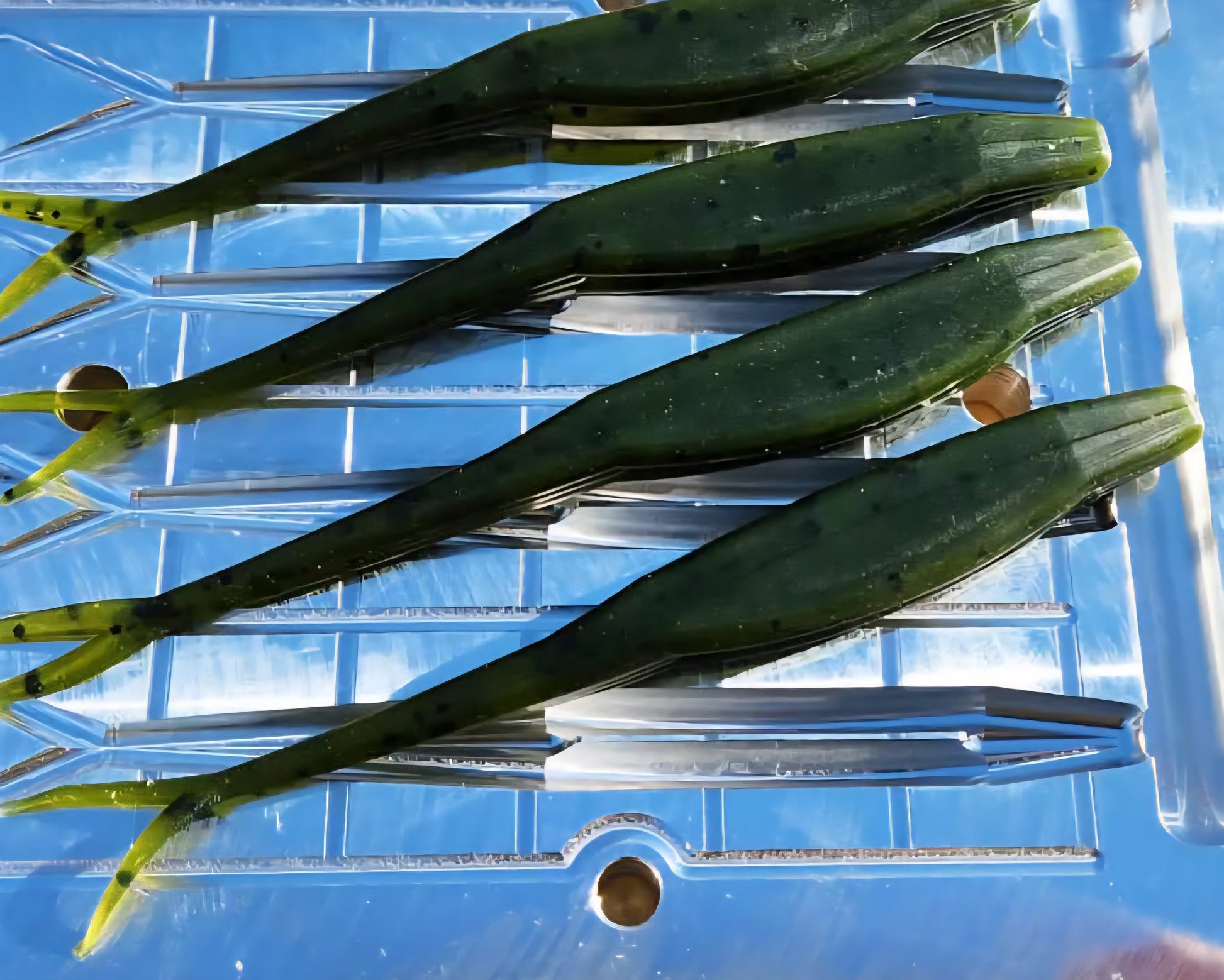 The Jerk is a 5" slit-tail shad with a quick erratic action that sends those big girls into a frenzy. The life-like dying bait fish dance is just more than they can stand!